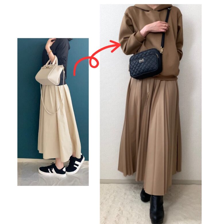 また、あえて同系色でまとめるのも「縦長効果」でスタイルアップでき、キレイめな印象に☺️