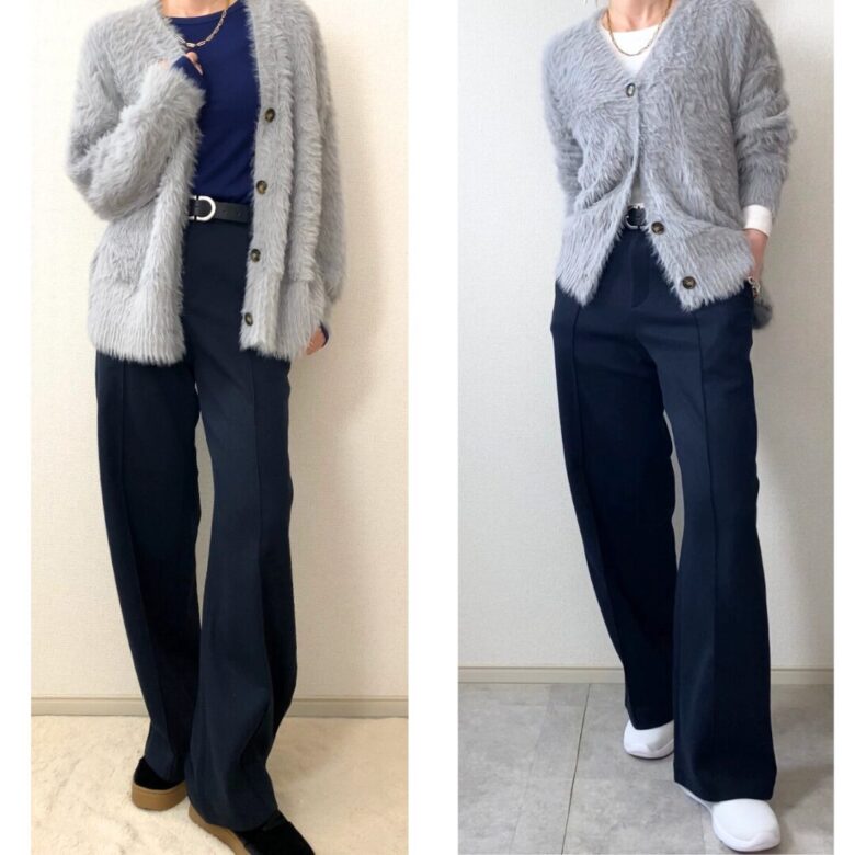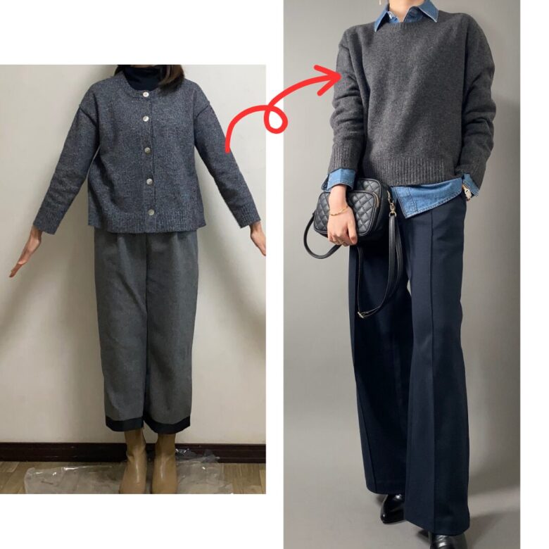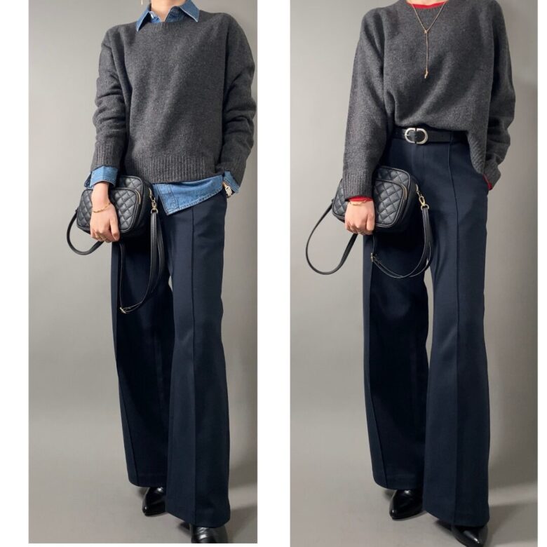 たとえばグレーのニットとパンツって、普通の組み合わせですよね。