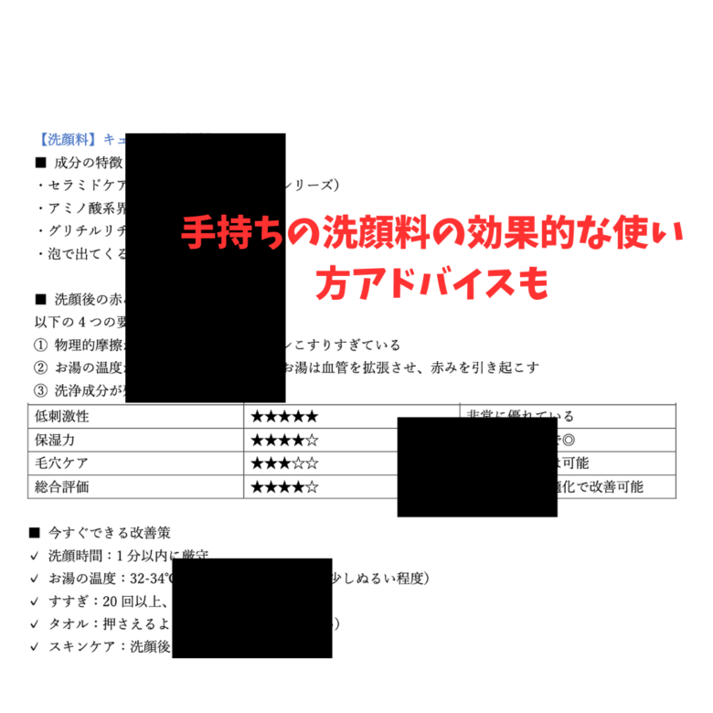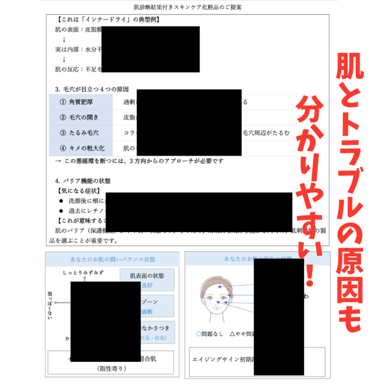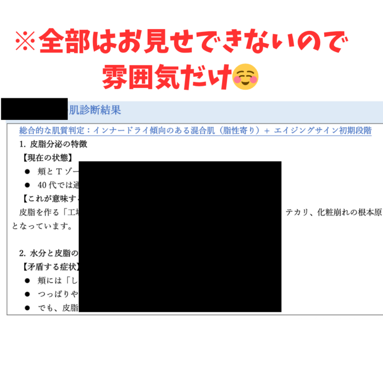 まずわたしの肌状態からどんな成分が合っていないかを細かく分析してくれて、