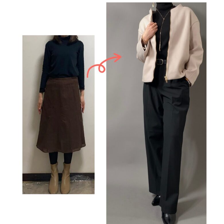 これらが合ってないせいで、バランスが悪い着こなしになってしまっていたんです💦